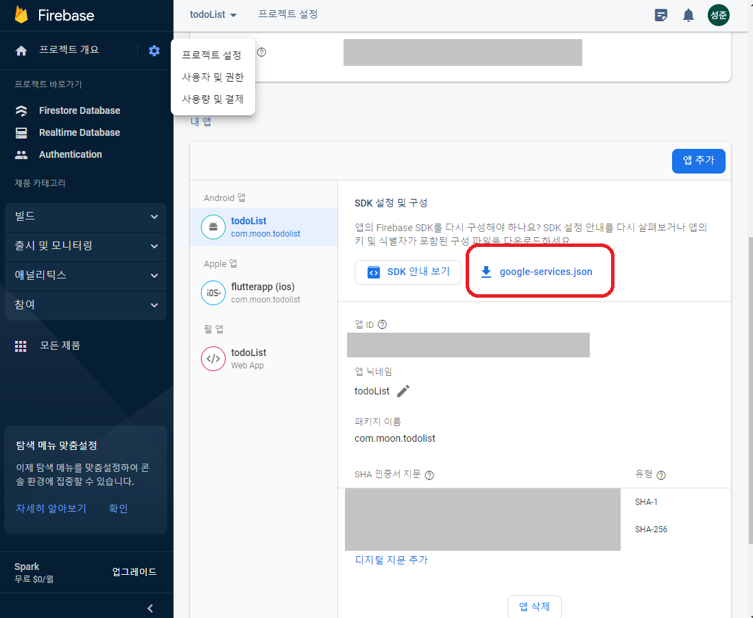 4. google-services.json를 프로젝트의 android/app 위치에 넣기